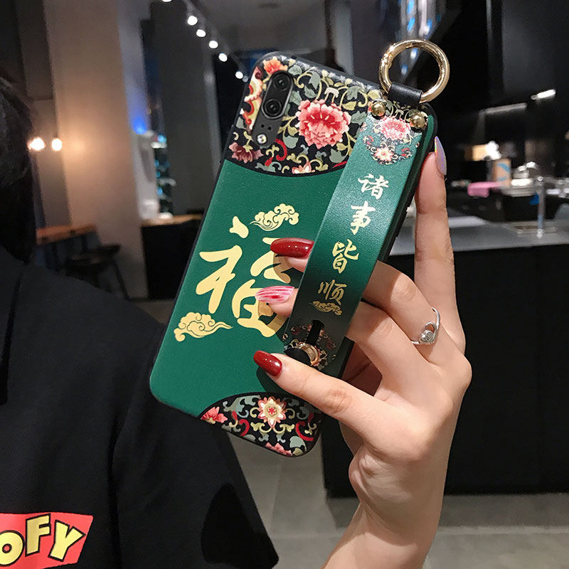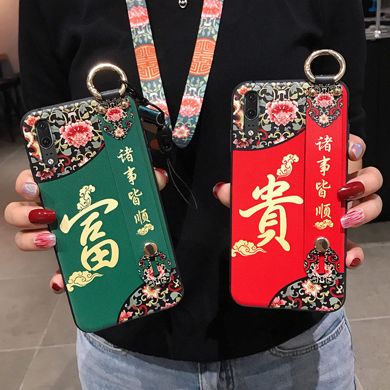 Huawei p20pro mobile phone protection shell women p20 China wind glory 20 strokes cat v20 hanging rope mate10 bracket 9 new 9 palace personality creative silicone holding baby bag full bag anti-fall