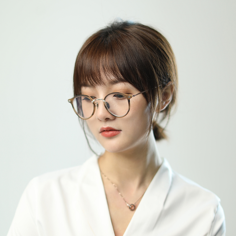 Japanese light luxury niche high-grade handmade glasses frame gold titanium retro round myopia literary and artistic female couple