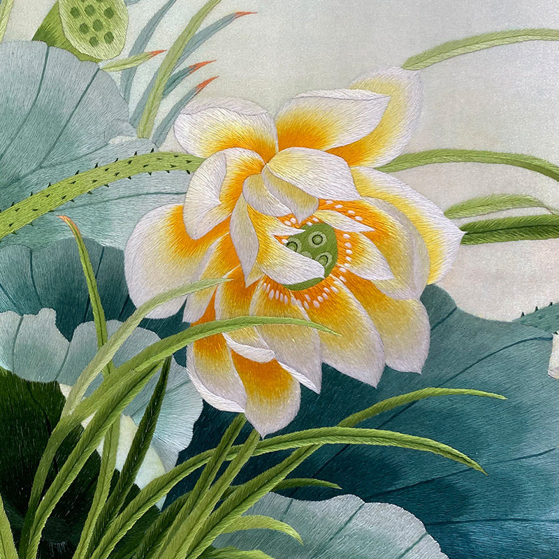 Jin Wu needle pure handwork embroidery picture Su embroidery finished product hangs picture sitting room porch new Chinese style adornment picture Ai Lian says lotus