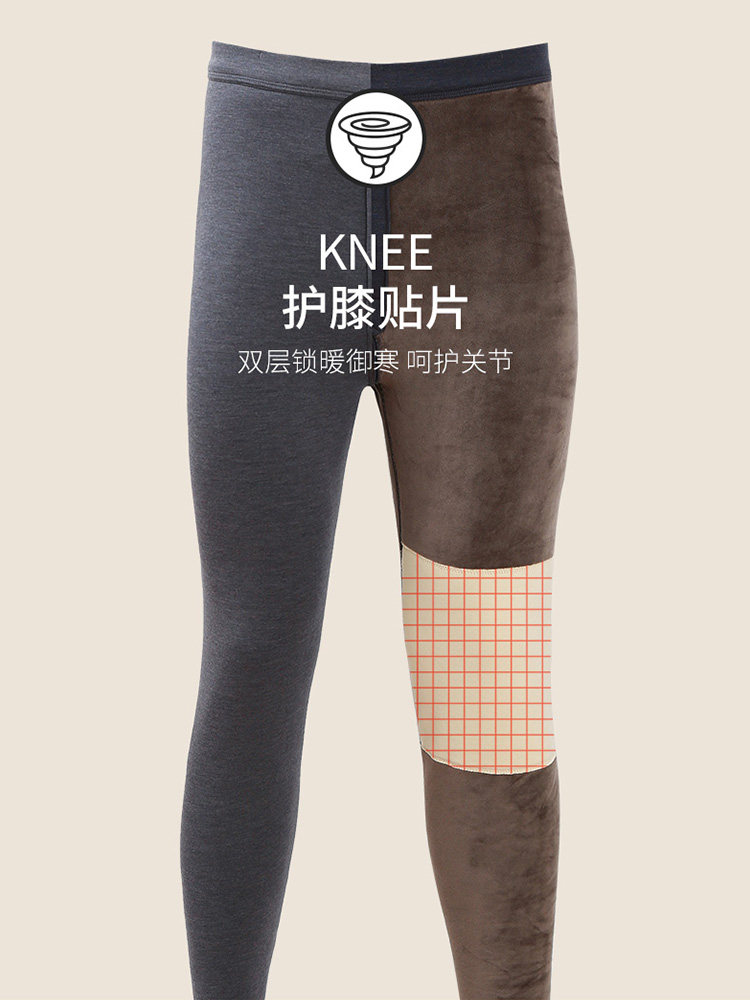 Sheroy men's double layer of warm suede thickened high-bomb fever fiber high waist to repair sweatpants kneecap winter warming single pants