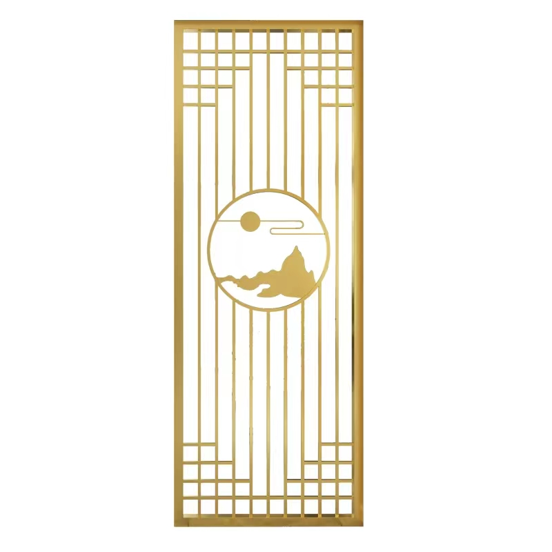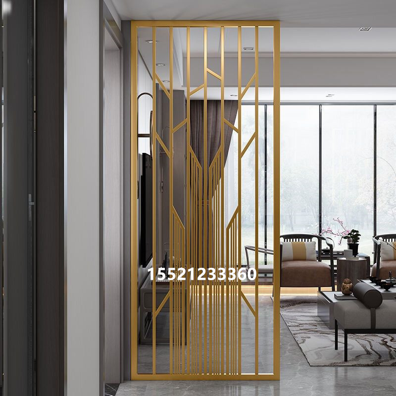 Titanium Metal Stainless Steel Screen Xuanguan Partition Grilles Champagne Light Luxurious Hollowed-out Chinese Living Room Aluminum Sculptures Customised