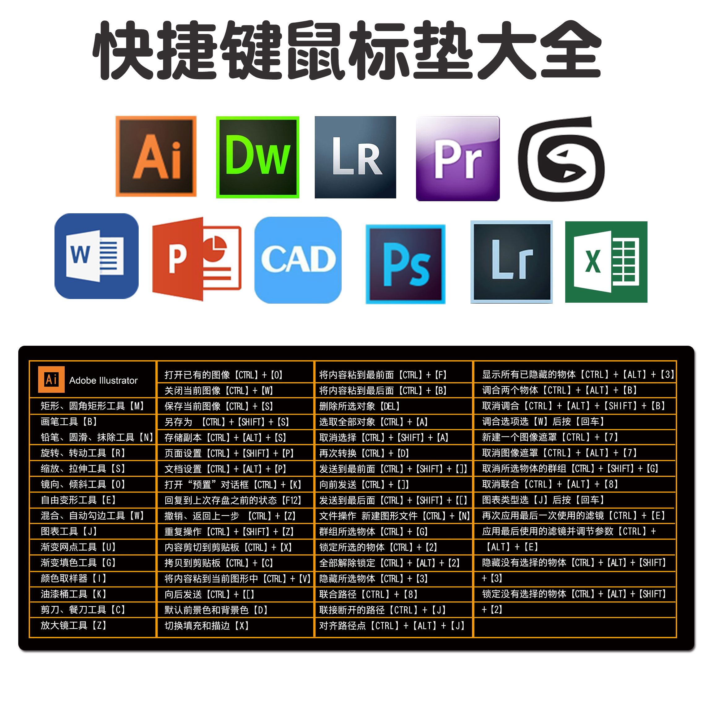 Shortcut mouse pad EXCEL oversized office CAD PS word office software Daquan custom mouse pad