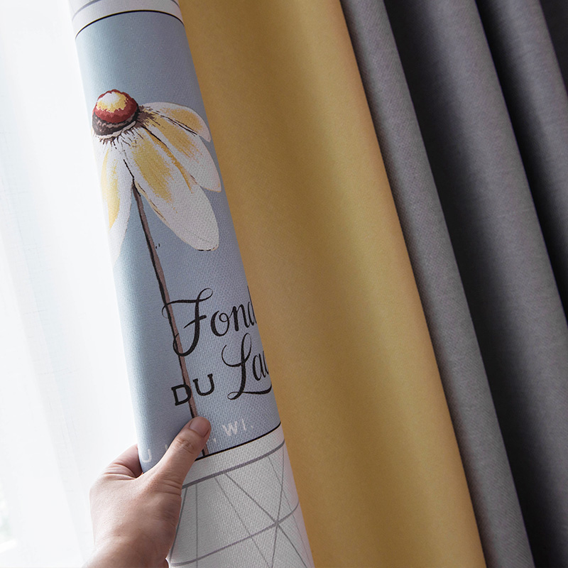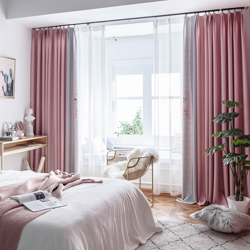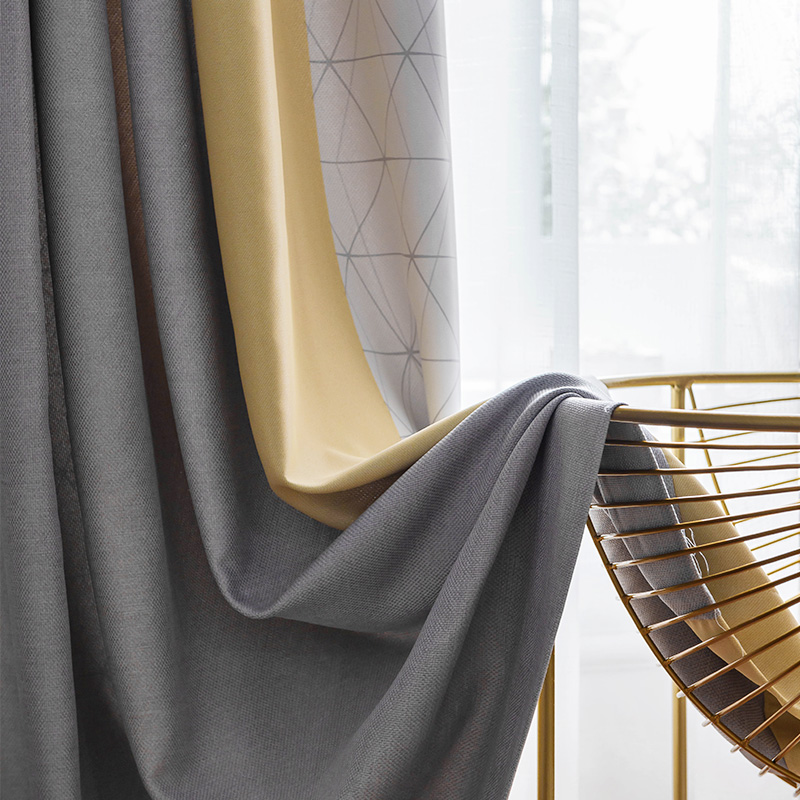 Blackout curtains Nordic simple living room custom thermal insulation sunscreen sunshade bedroom print colorblock Korean warm full cloth