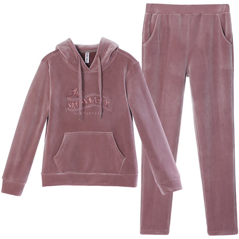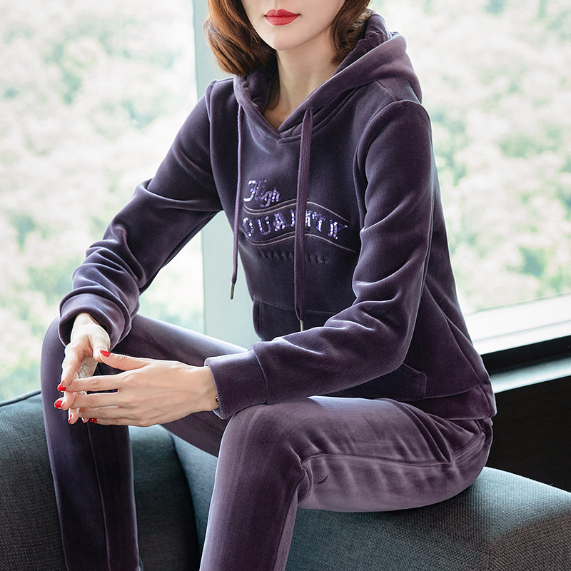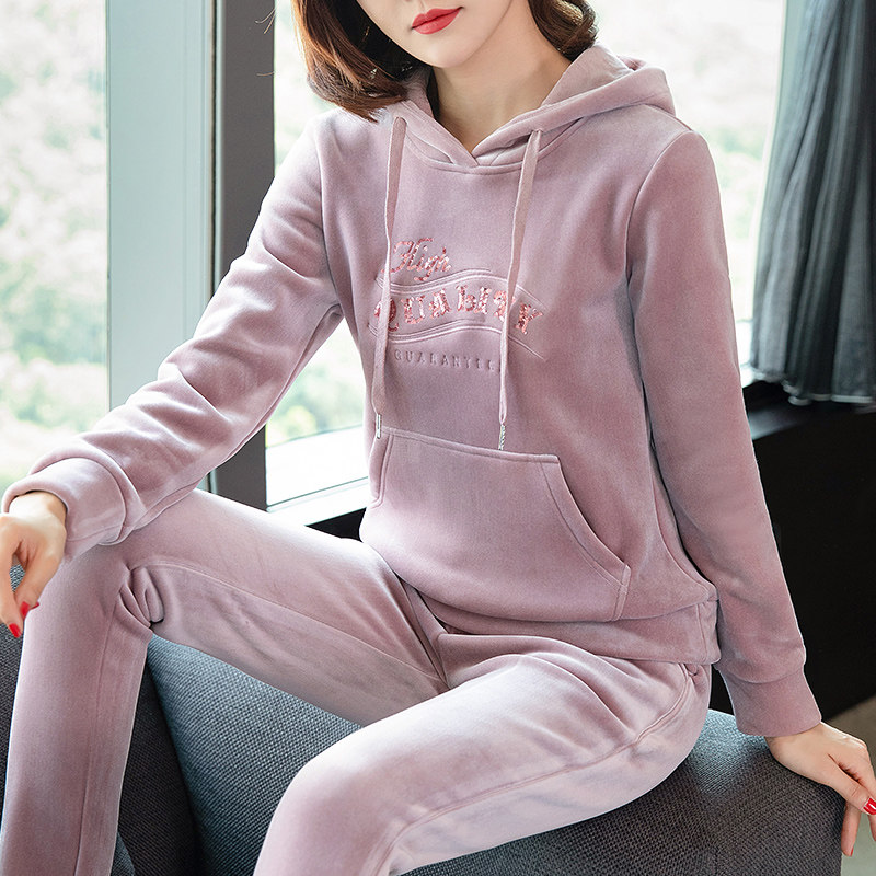 Thick gold velvet suit women's winter 2022 new fashion trend hooded casual sports fleece sweater two-piece set
