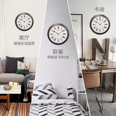 SEIKO Japan SEIKO 16 inch clock living room atmospheric quartz clock Roman scale wood grain silent round wall clock