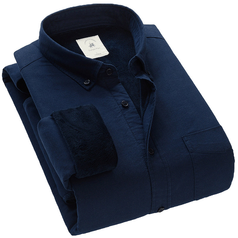 Olaf Laurenma ball men's warm shirt with velvety thickened winter workout polished wool Oxford spun pure cotton long sleeve middle-aged shirt