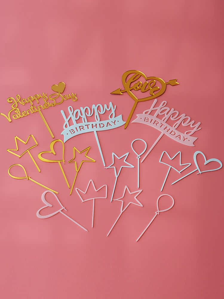 Bright Face Acrylic Inserts Birthday Cake Decoration Plug-in Valentine's Day Dress Party Loving Crown Inserts