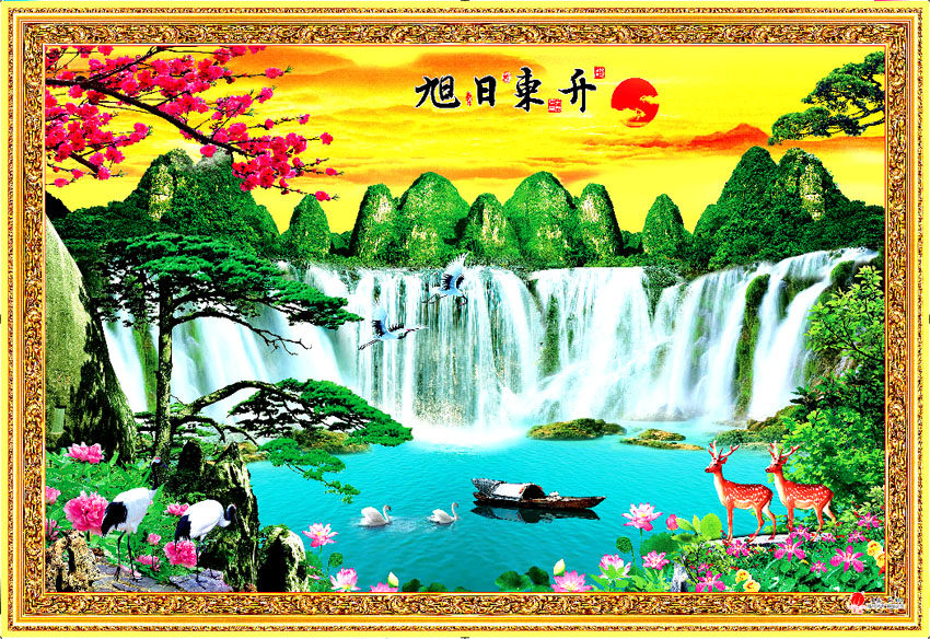 Landscape, landscape, waterfall, glueless wall paintings, New Year pictures, extra large nightclub, KTV Internet cafe, Rising Sun 7801