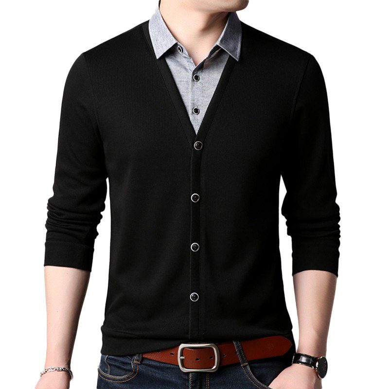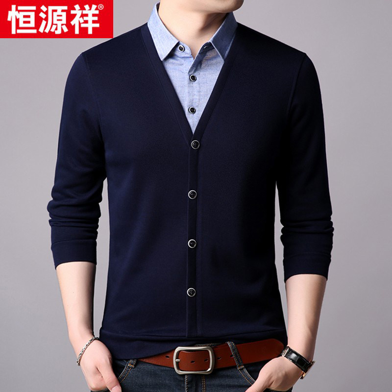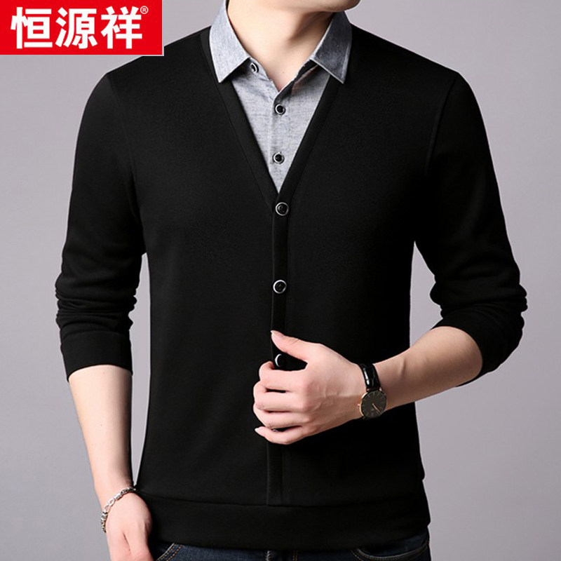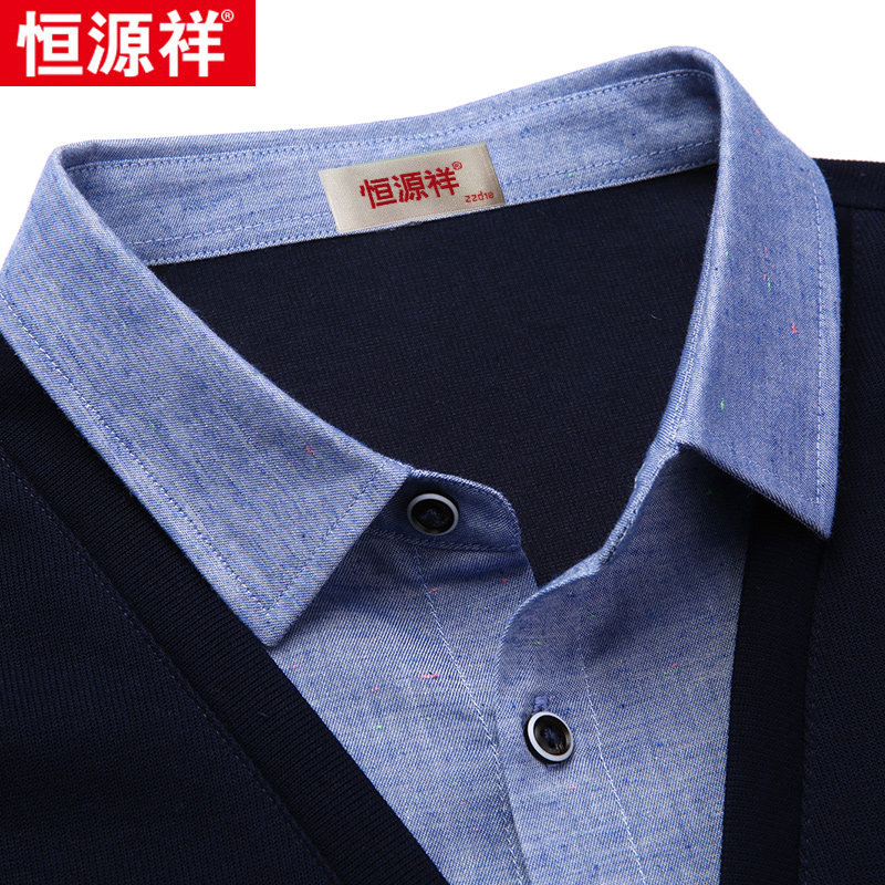 Hengyuan Xiang fake two men long sleeves T-shirt collar middle-aged dad sweater spring autumn new type of underhand jersey