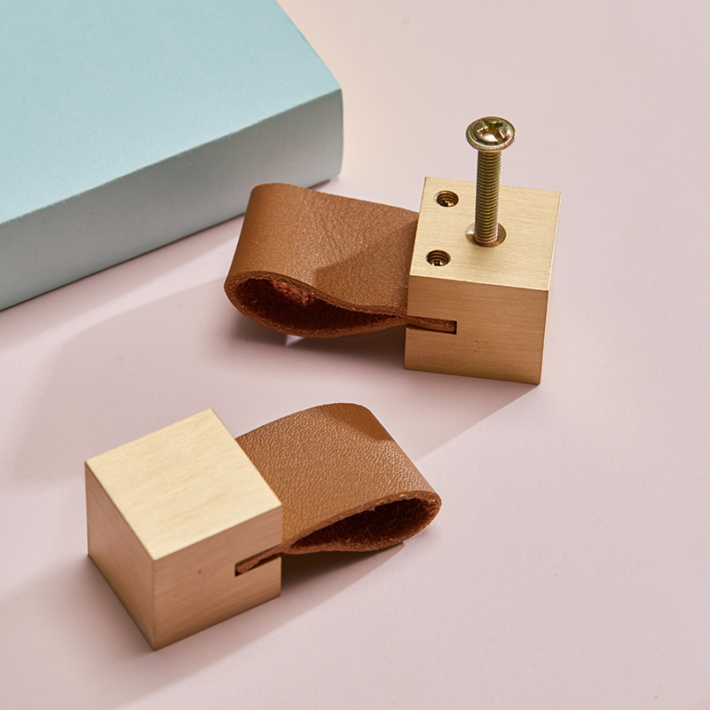 CHONG (sugar cube) brass leather handle single hole wardrobe cabinet door drawer overall cabinet creative handle light luxury