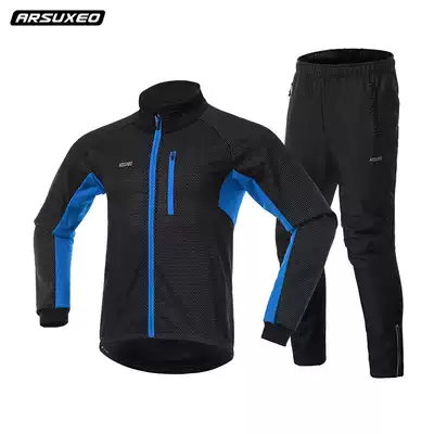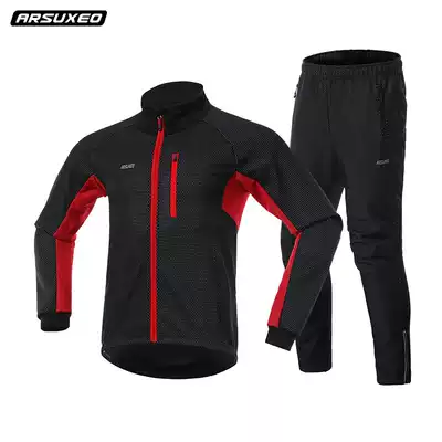 Cycling suit suit men's winter warm windproof cycling suit mountaineering bike jacket fleece riding trousers large size