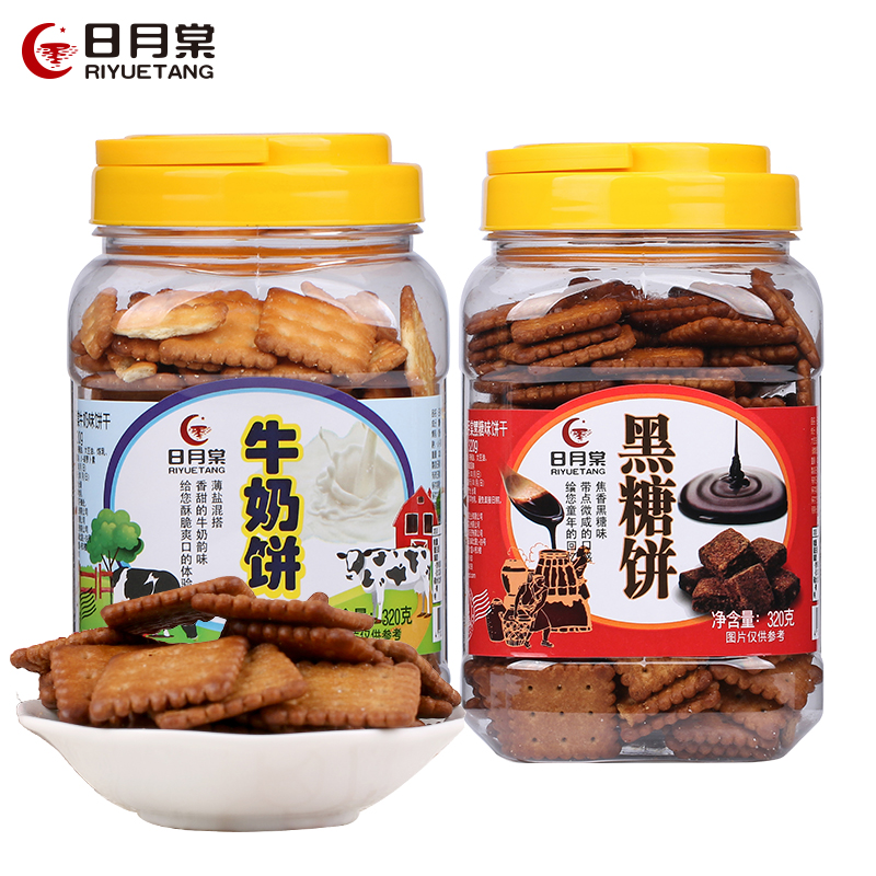 Taiwan Riyuetang Black Sugar Milk Biscuits Caramel Snacks Breakfast Substitute Leisure Crispy Biscuits 320g * 2 Canned