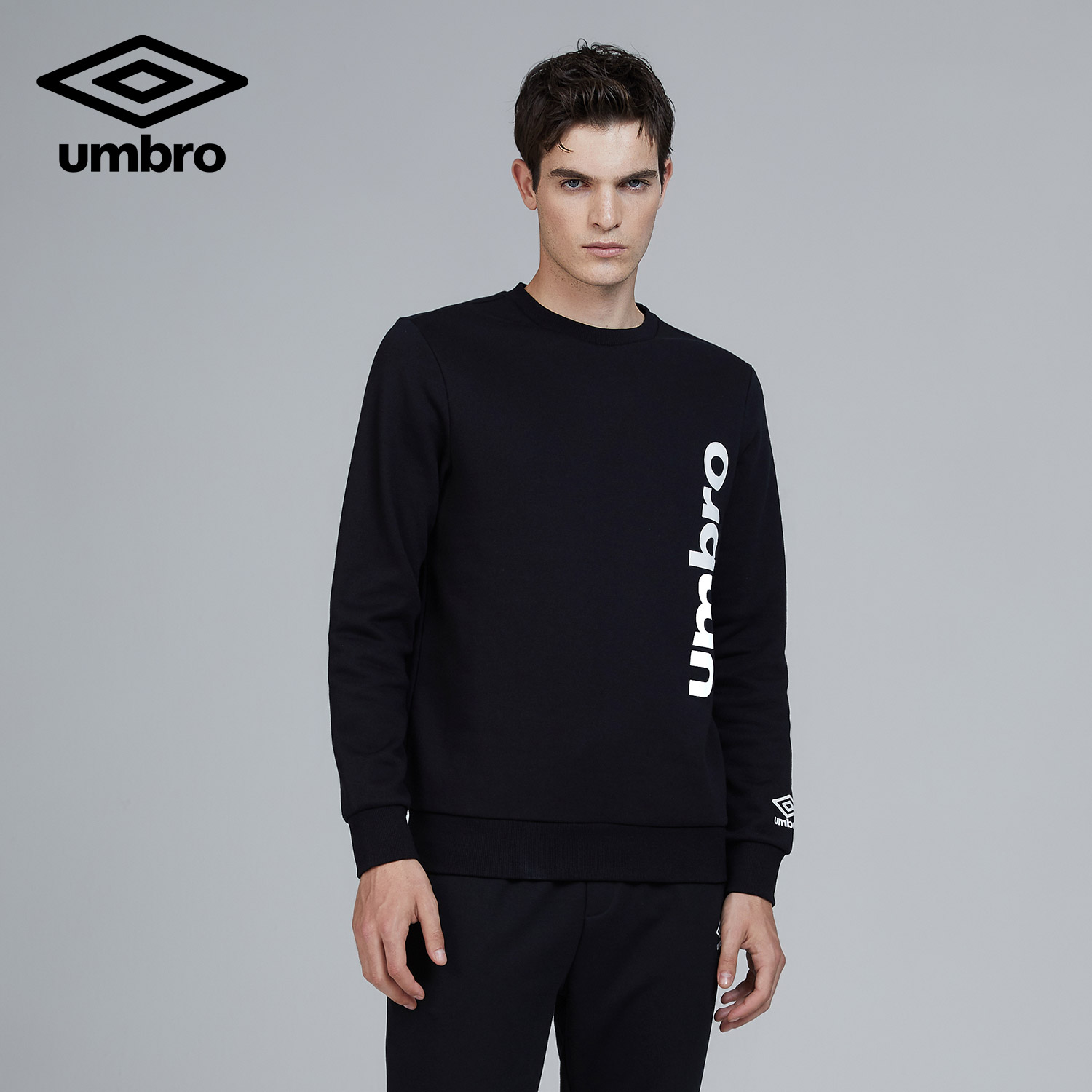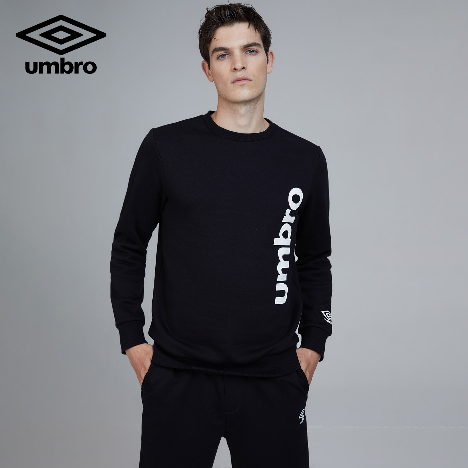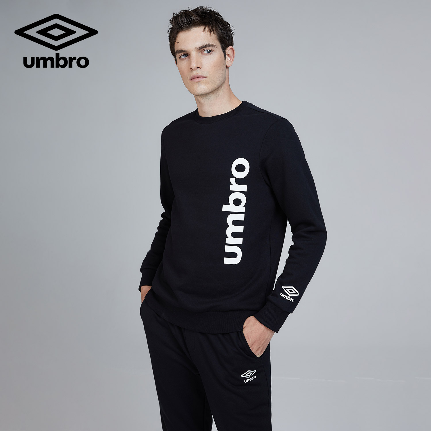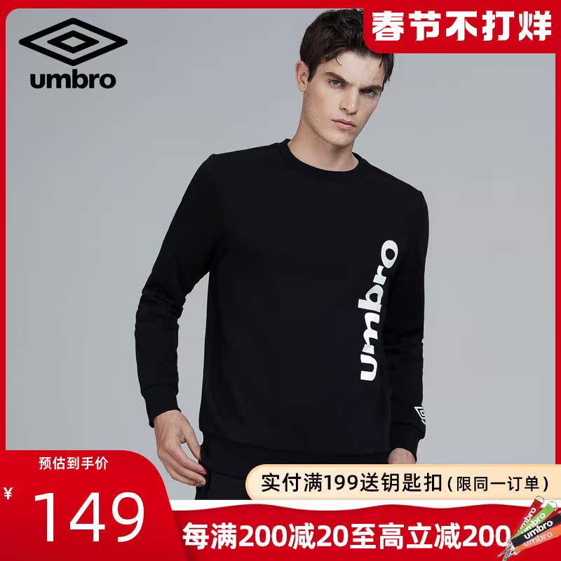 Umbro spring and autumn new men's printed pullover round neck hat-free plus velvet warm long sleeve trousers thick cotton T