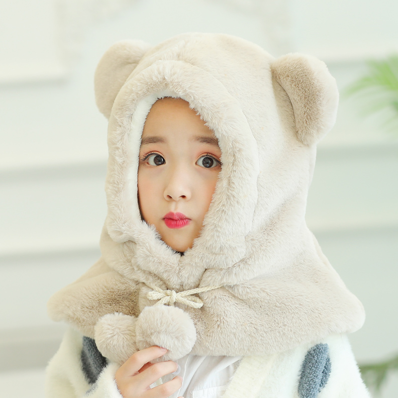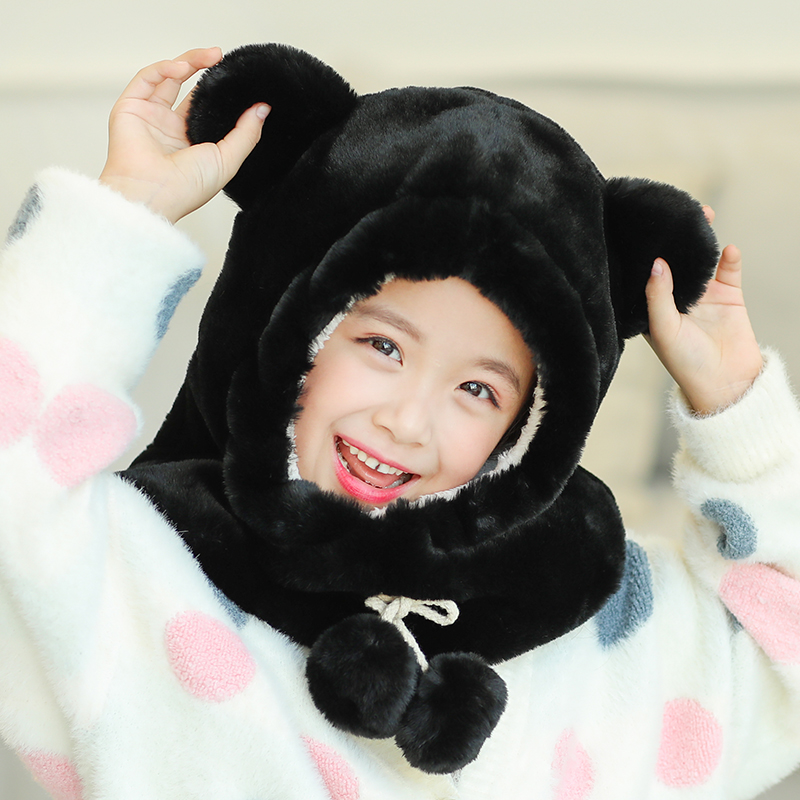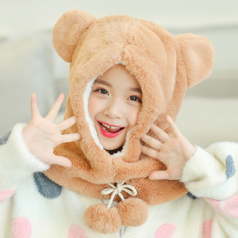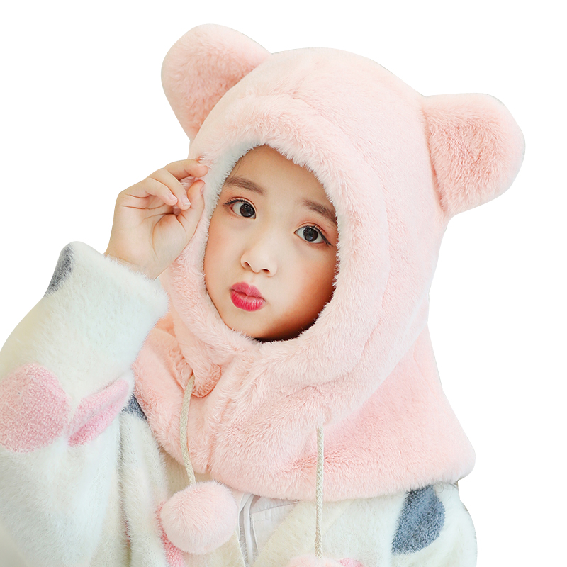 Children's hat autumn winter girl's windproof protective ear integrated plush hat warm surrounding neck childlike baby baby cute tide