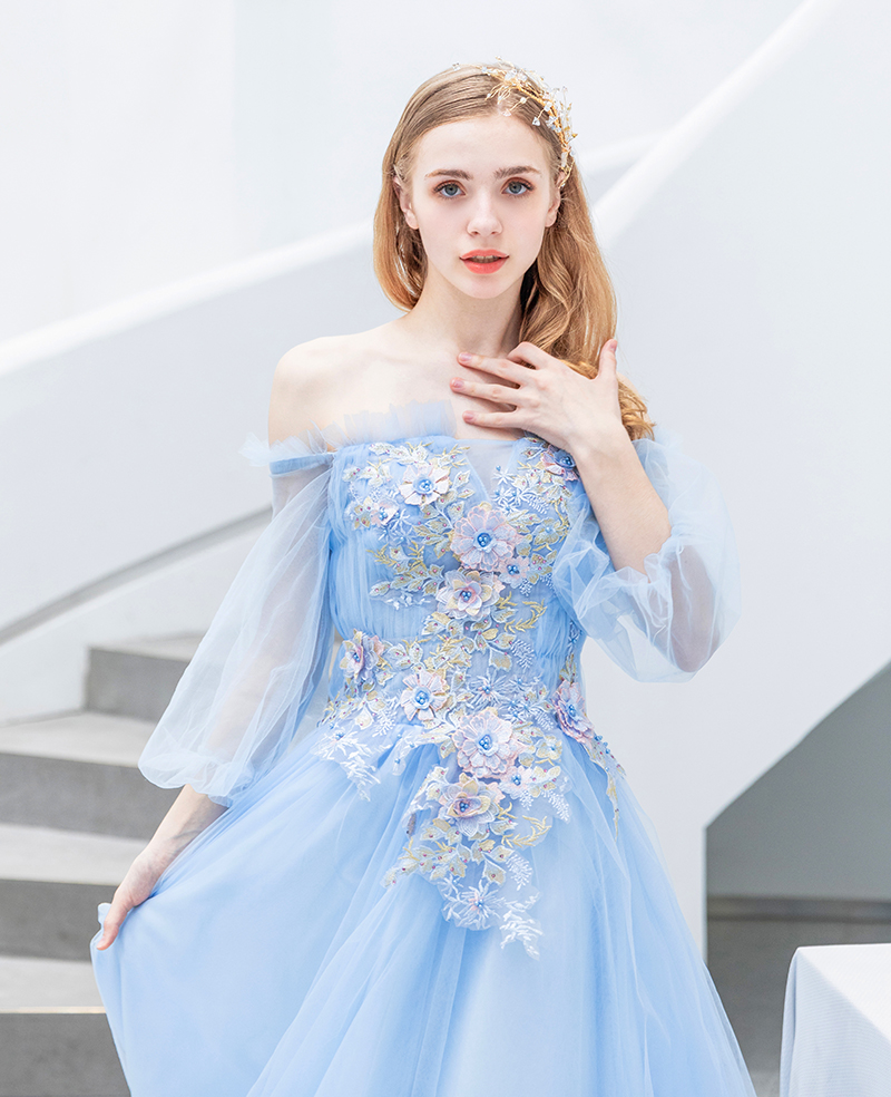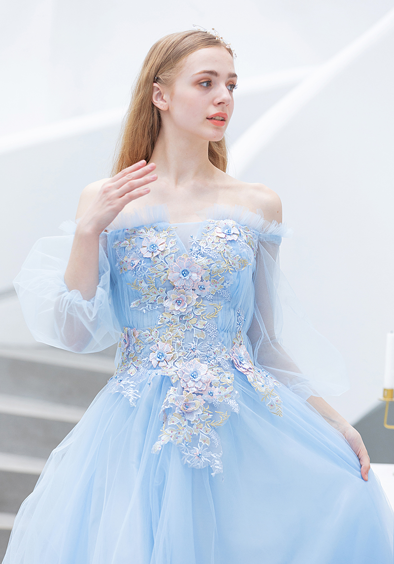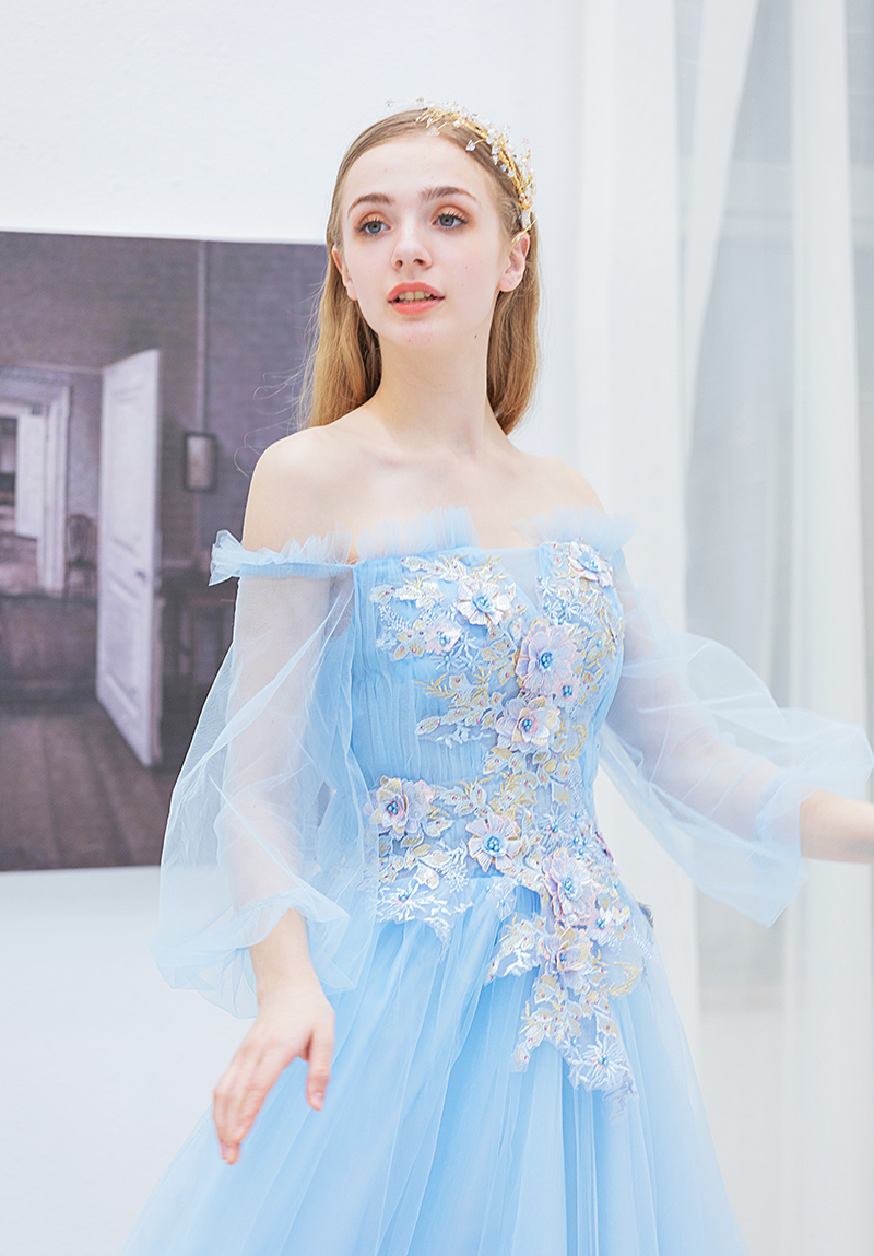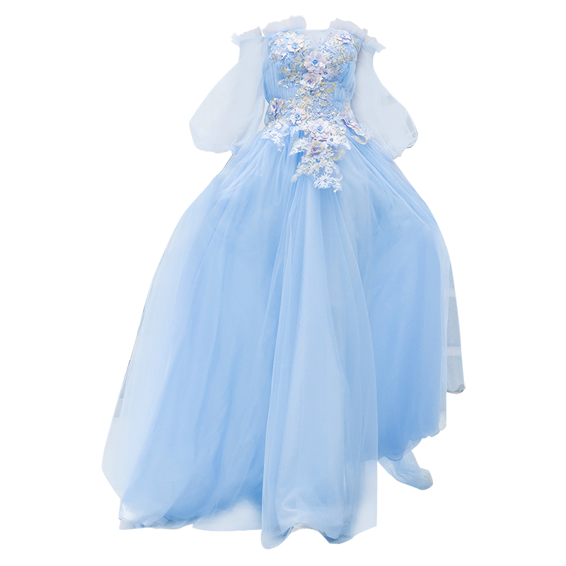 (Special Price Clearance Warehouse Pickup) Blue French style long sleeve stage acting out of the art take on the show wedding dress Evening dress 9276