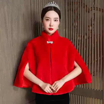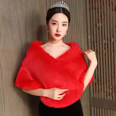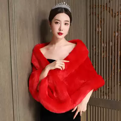 Bride wedding hairy shawl female wedding bridesmaid warm thick dress shawl autumn winter cloak coat imitation fur
