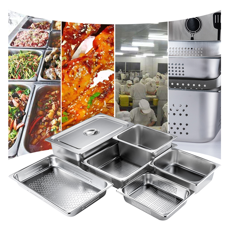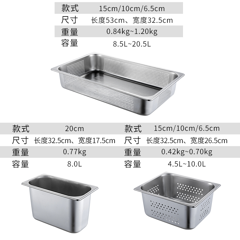 Rectangular stainless steel punched hole parts basin thickened filter basin with hole wash vegetable basin drain with multipurpose buffet drain pan