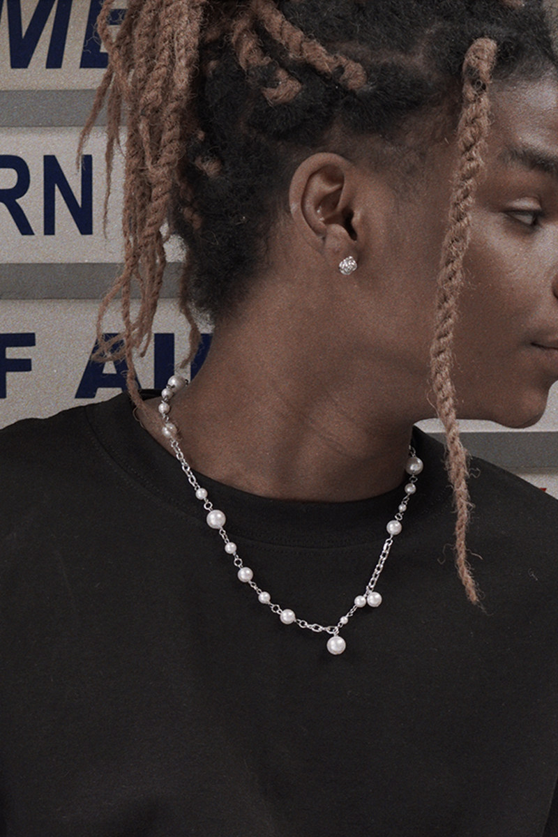 KREAM original Steel Pearl Necklace Silver Pearl Pearl Necklace male and female hip-hop stars with the same style