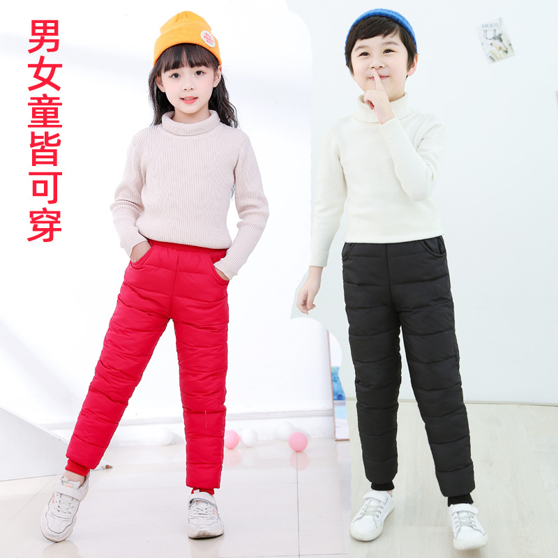 Northeast Harbin Snow Township equipment down pants wear men's and women's children's winter high waist super thick cold-proof flannel cotton pants