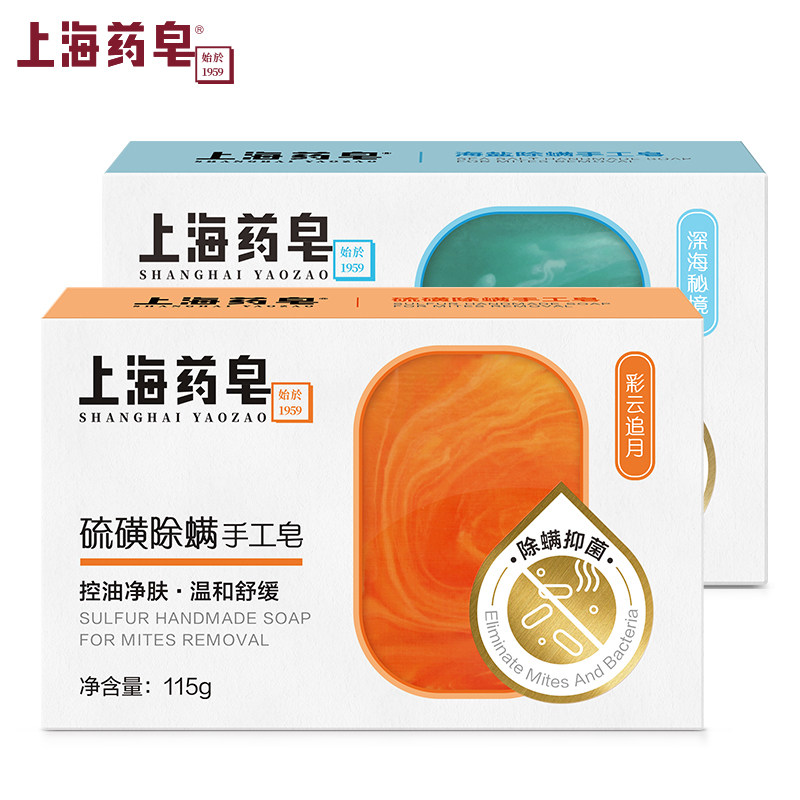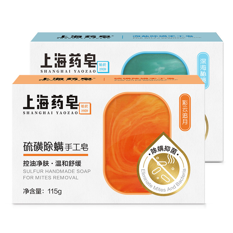 Shanghai Drug soap in addition to mite Sulphur Soap Handmade Soap 115g * 2 Block Mite Soap Control Oil Net Skin Bacteriostatic