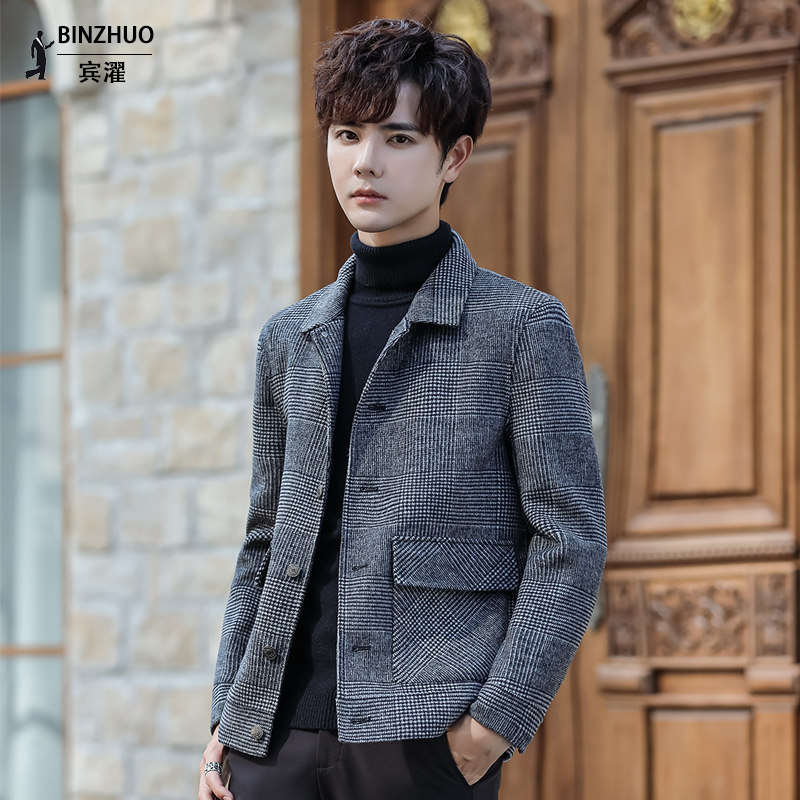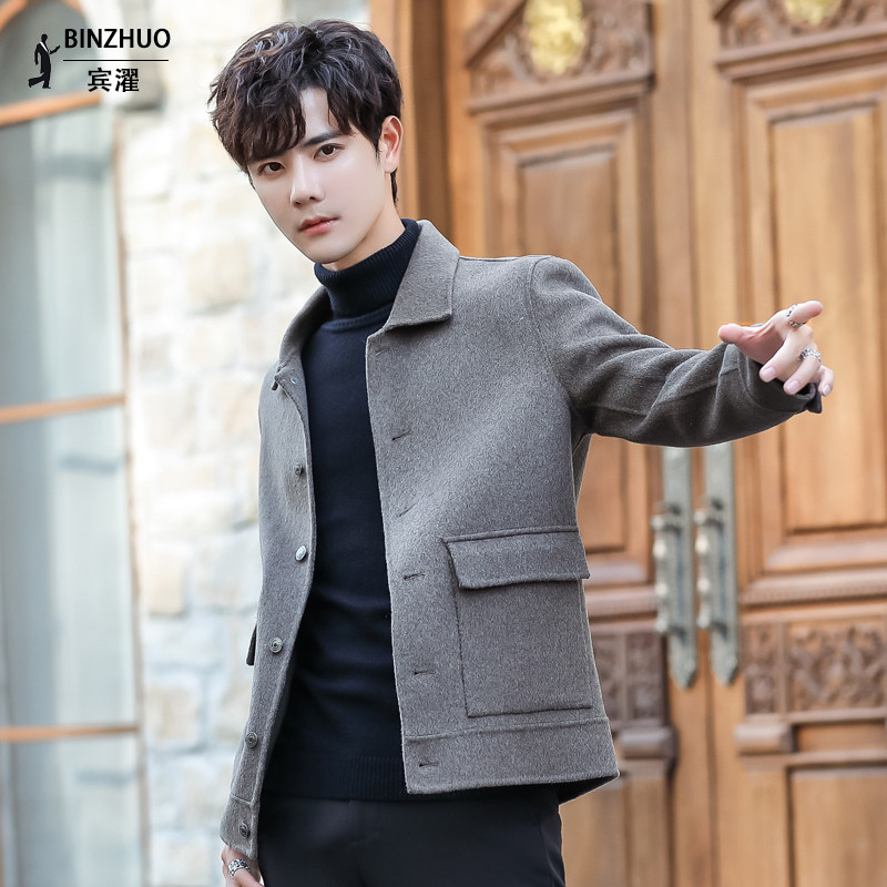 Autumn-winter bifacial niddy men's short Han version wool Hooded Jacket Cashmere Aniseed Jacket Tide Blouse