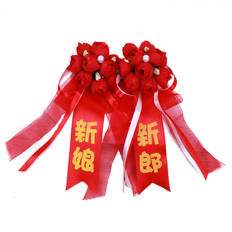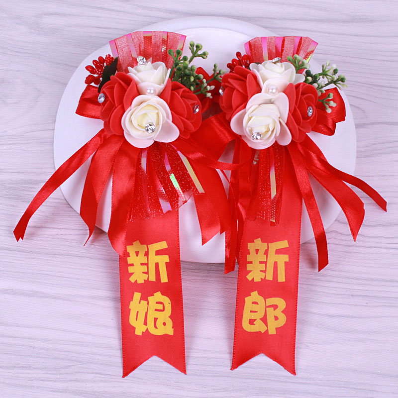 A pair of red bridegroom and bride, a pair of red father and mother, a pair of red groomsmen and bridesmaids, a pair of red sisters, a red brotherhood, a red greeting, a red sending off, a red guest, a red manager