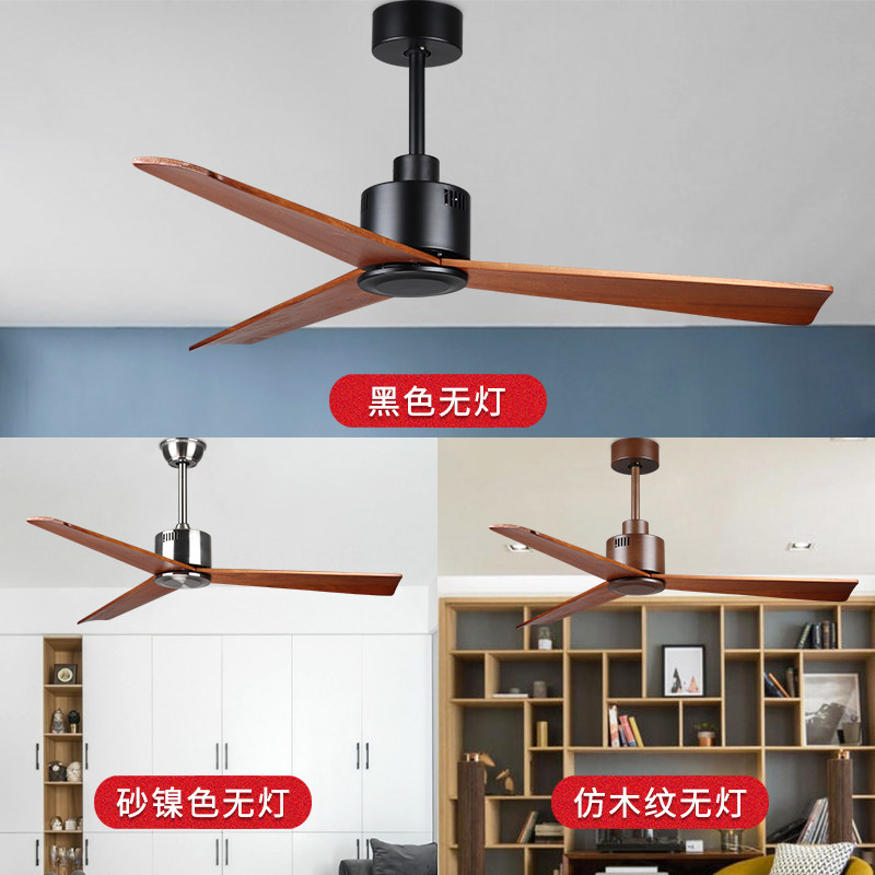 Nordic simple dining room without lights, large wind solid wood ceiling fan living room with lights ceiling fan household variable frequency electric fan lamp