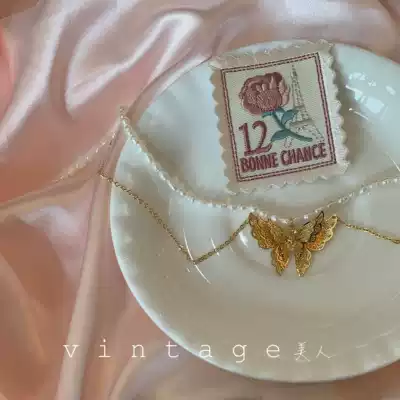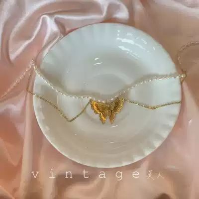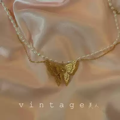 "Zhuangsheng Dream Butterfly" retro niche fashion gentle freshwater pearl three-dimensional double-layer butterfly necklace choker