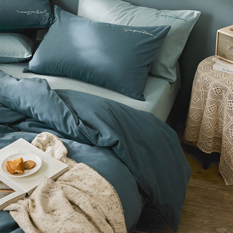 Autumn and winter solid color pure cotton brushed four-piece set Nordic wind thickened warm Cotton bedding Bed sheet duvet cover Bed sheet