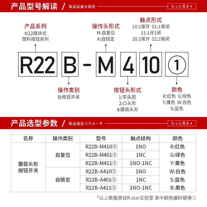 R STAR Red STAR self-reset mushroom head push button switch 22mm mushroom head green red yellow M410G R Y