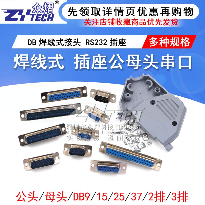 DB9 female head welding wire type 10 DB9 male head welding wire type 10 DB15 female head welding wire type two-row 5 DB15 male head welding wire type 2-row 5