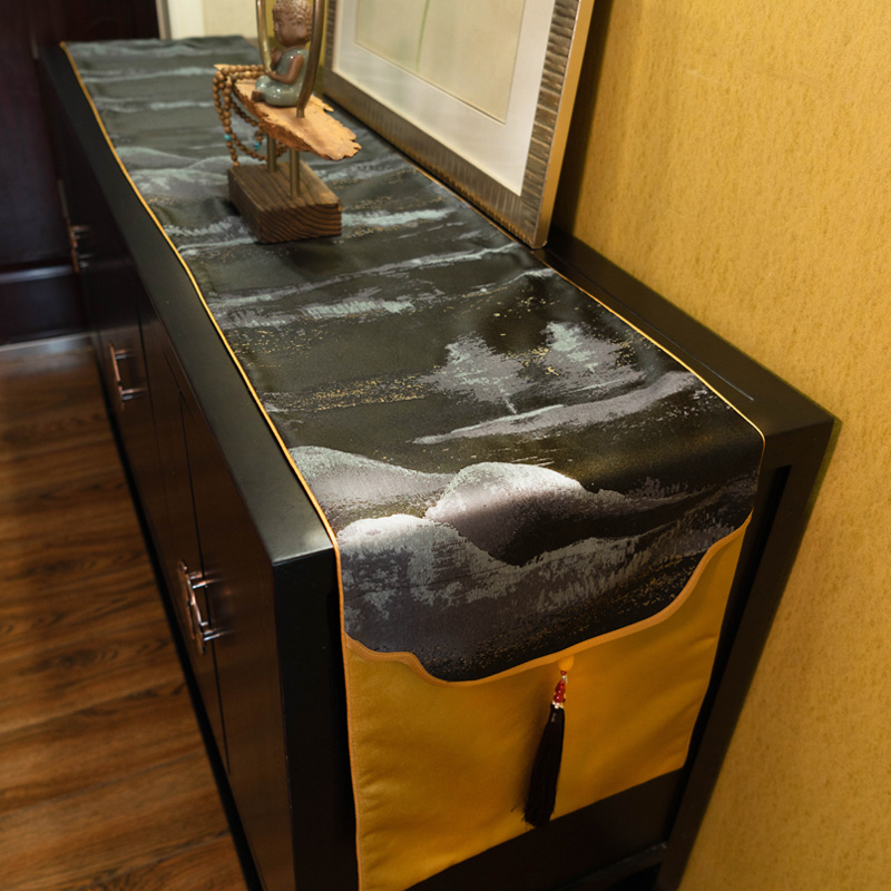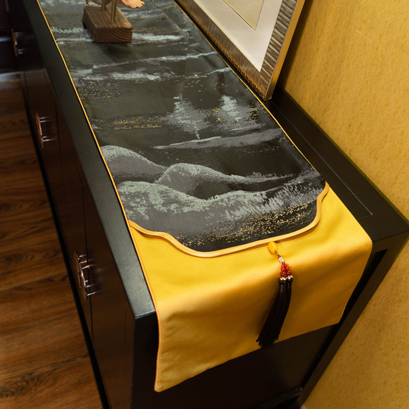 Sample room Chinese table flag black light luxury Chinese style Zen tea table Flag table cloth High-end Bed Flag Tea Mat table Butch Tea mat