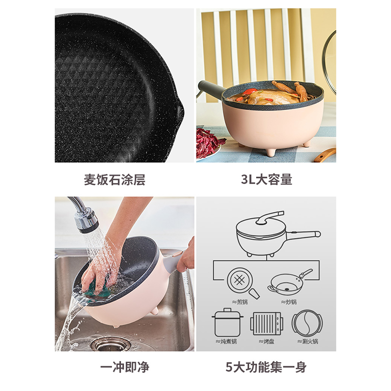 Supor electric wok Household multi-function wok hot pot fast cooking pot Dormitory student pot Cooking integrated