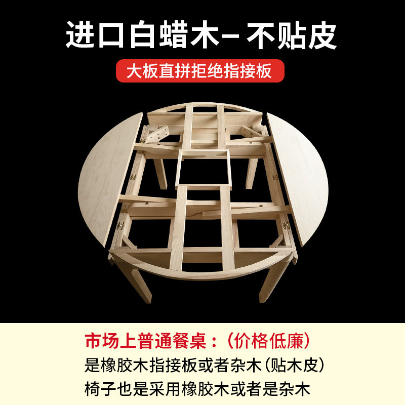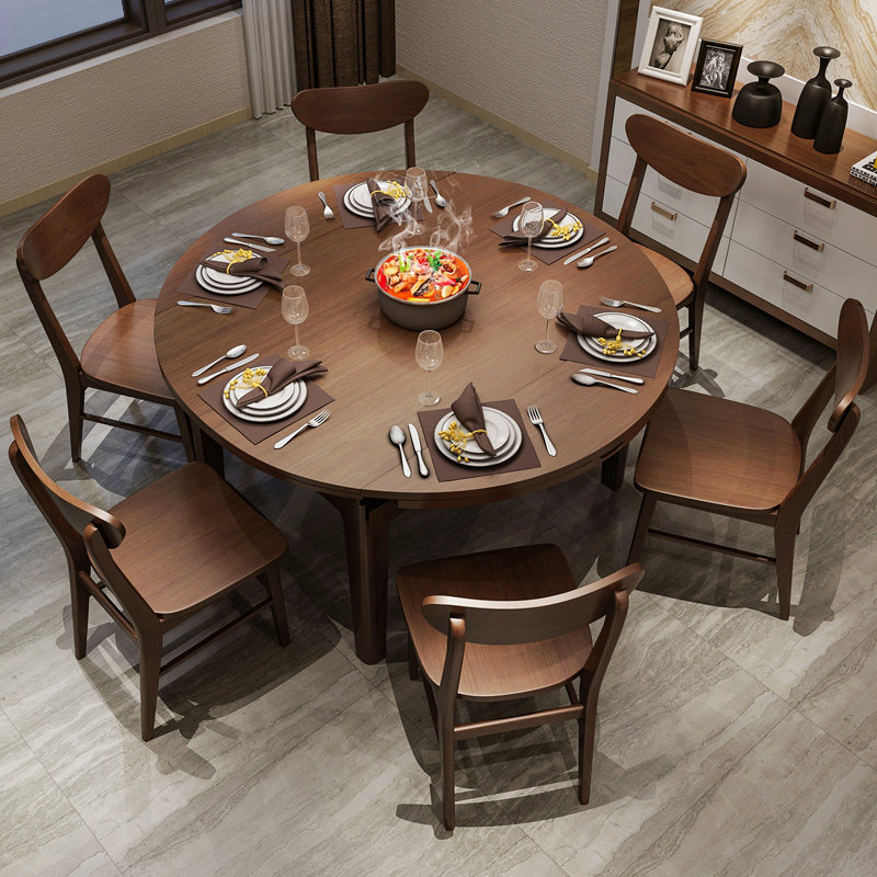 Nordic full solid wood dining table and chair combination foldable retractable round dining table simple modern size apartment round table dining table