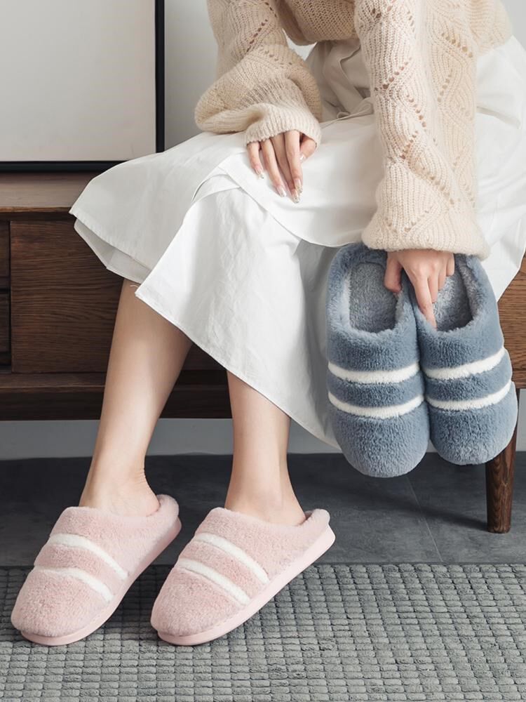 Cotton slippers women's indoor couple winter living warm thick bottom non-slip plush confinement shoes men's winter