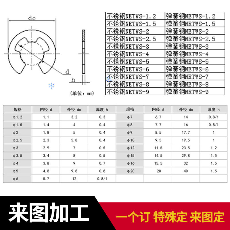Stainless steel E-type clasp snap C Type clasp opening buckle NETWS1 2 1 5 2 2 5 3 4 Processing customisation
