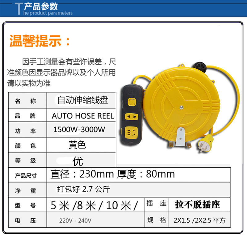Electronic drum automatic recycling line reel reel telescopic power supply rewinding spool reel line extension socket row plug wiring board