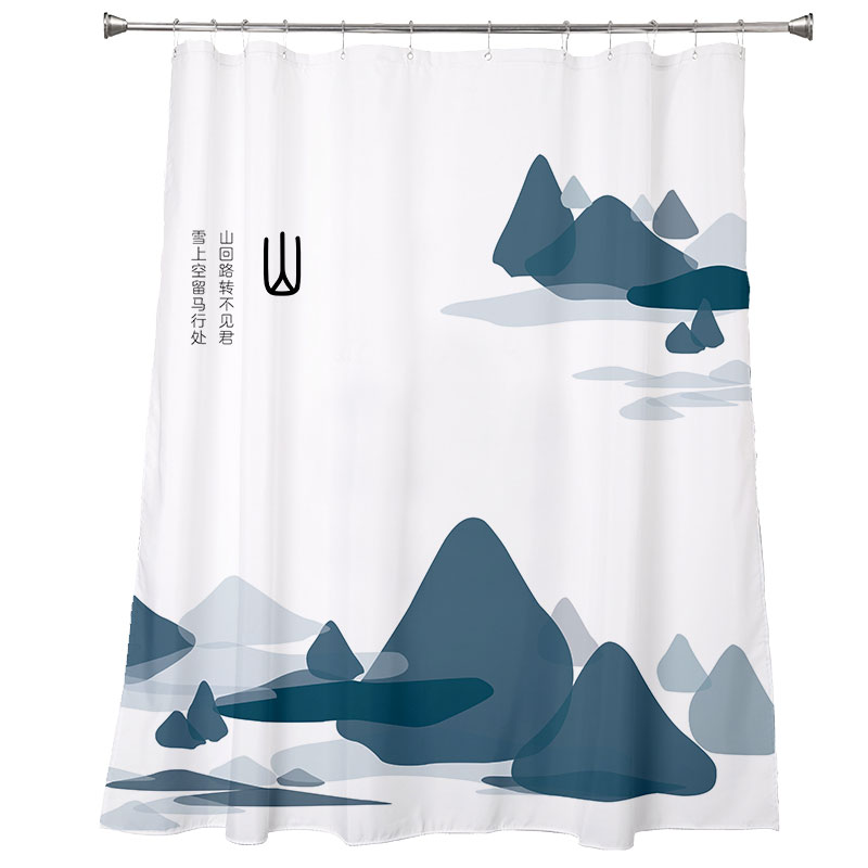 New Chinese bathroom waterproof shower curtain set Powder room waterproof cloth thickened mildew-proof water-proof partition curtain free of holes