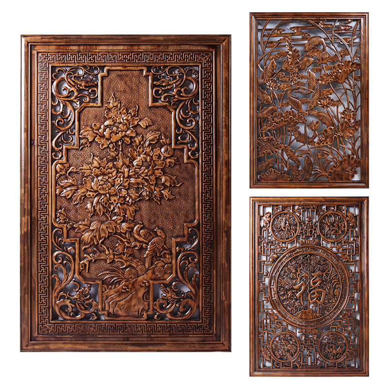 Dongyang wood carving horizontal and vertical screen pendant camphor wood depicting Chinese antique living room background wall hanging entrance decorations