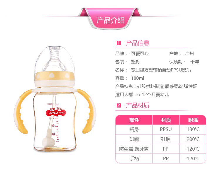 New products Cute Hearts Wide Caliber PPSU Cute Bottle 180ml Liquid Silicone Pacifier Breast Milk Touch