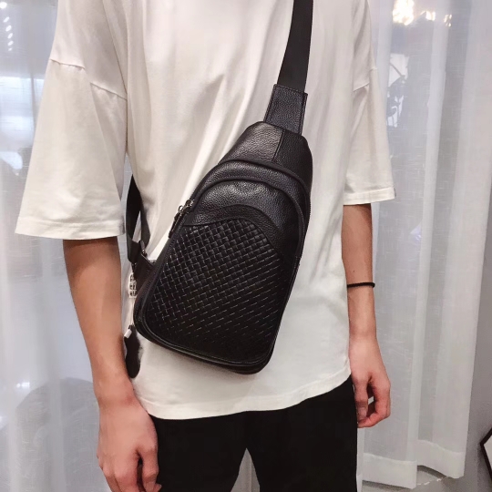 Genuine Leather Men's Bag Men's Chest Bag 2019 New Head Layer Cow Leather Embossing Plaid Satchel Korean version Trend casual shoulder bag