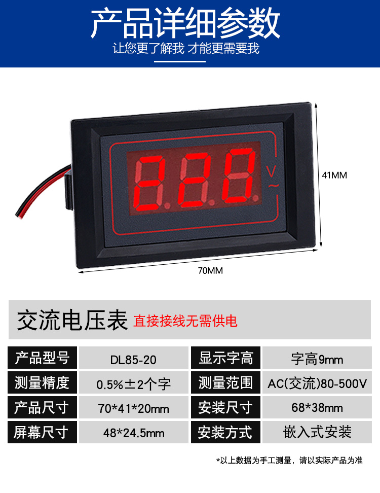 LCD numerical display table DL85-20 AC display voltmeter measurement range AC80-500V