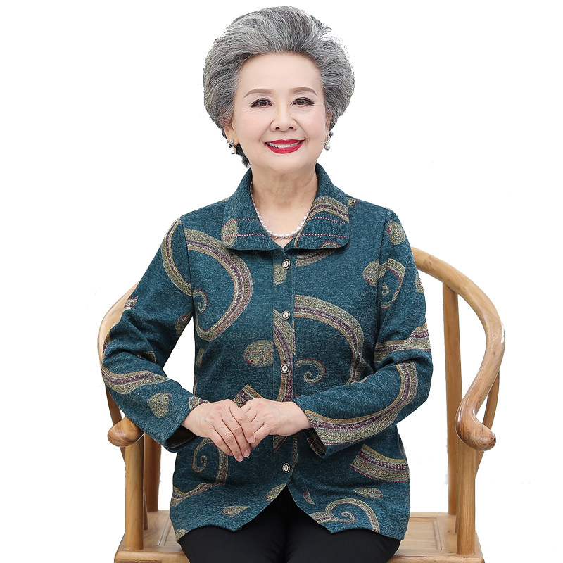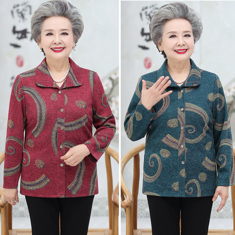 Middle-aged old man's autumn dress blouse 60-70 years old grandma spring and autumn thin coat mother long-sleeved shirt old man's clothes