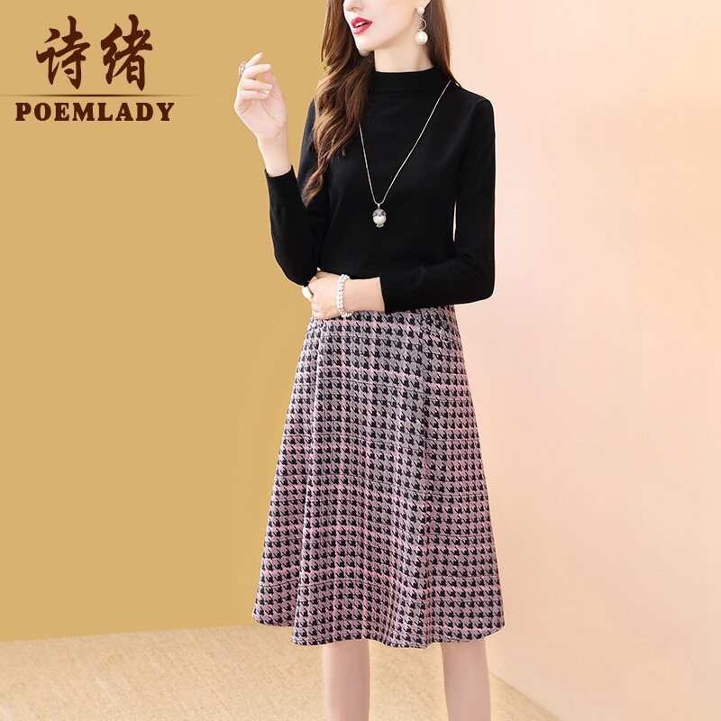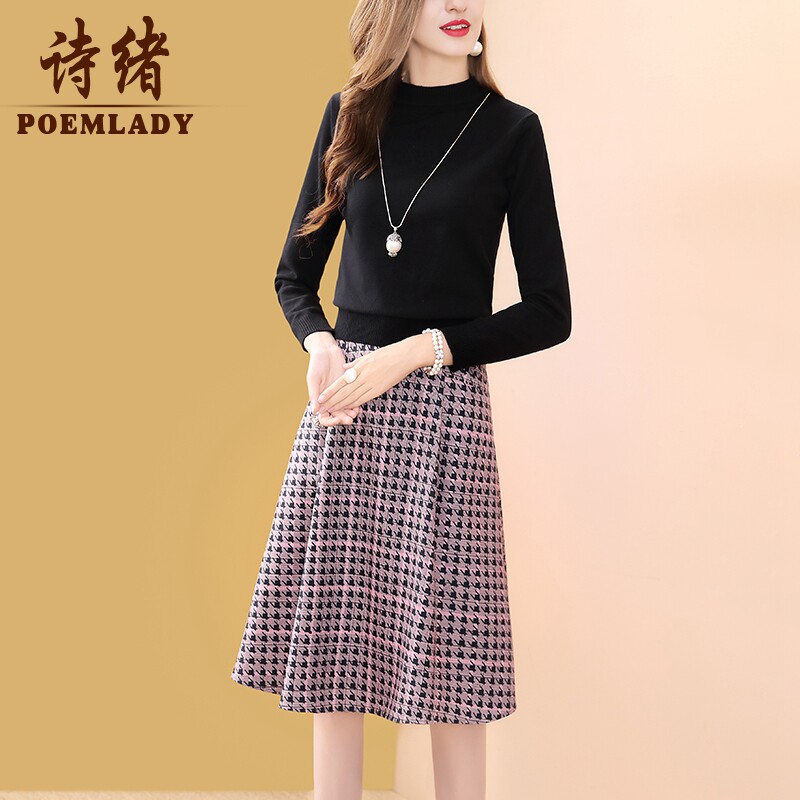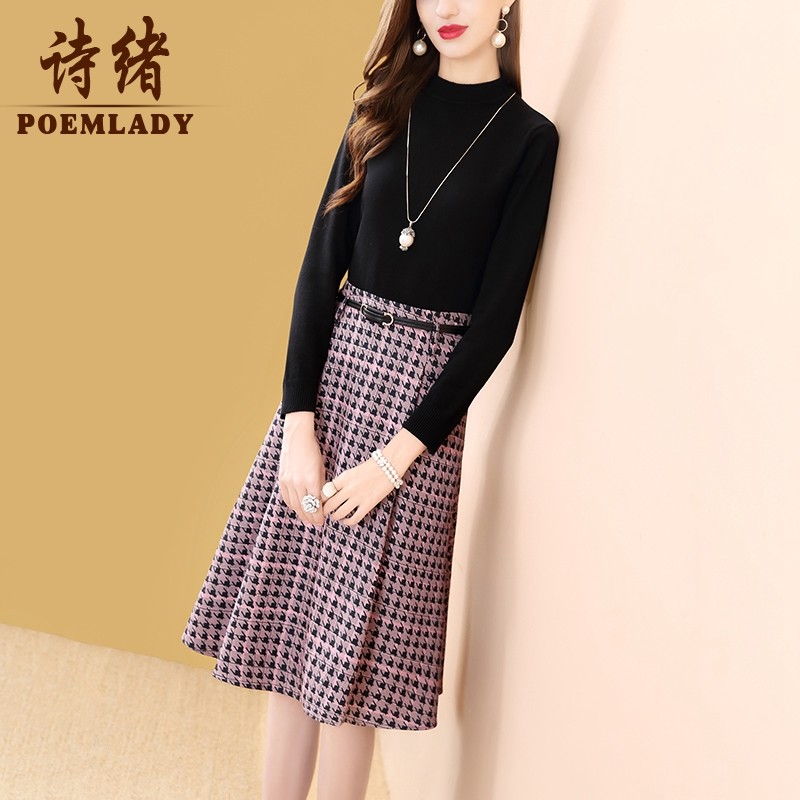 Poetry Mind Fashion Thousands of birds Ga character dress Women's autumn Winter 2021 new temperament 100 hitch leisure age mid-length version 50575