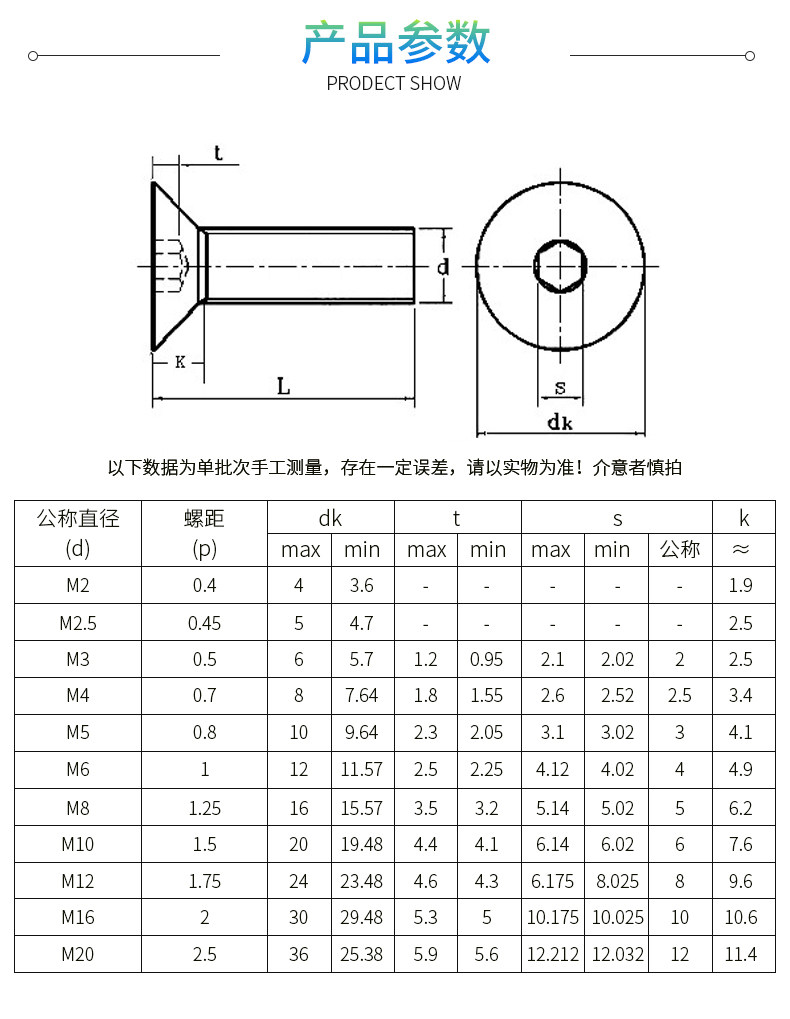 M8M10M12mm 201 stainless steel countersunk head hexagon screw flat head screw*16 20 25mm