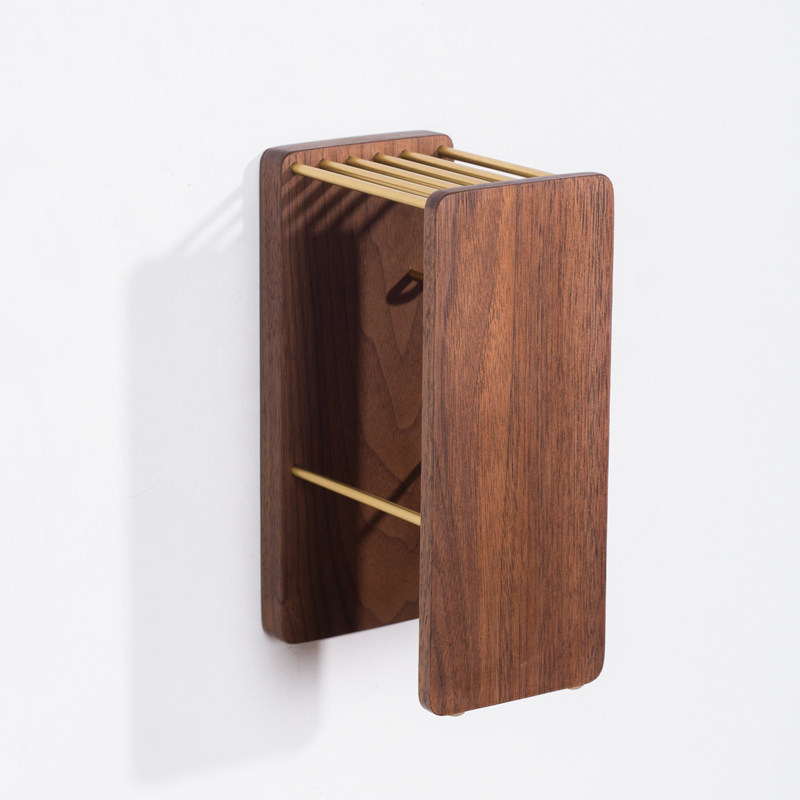 Kitchen knife rack wall-mounted vertical dual-purpose kitchen knife storage rack scissors rack free punching black walnut multi-function