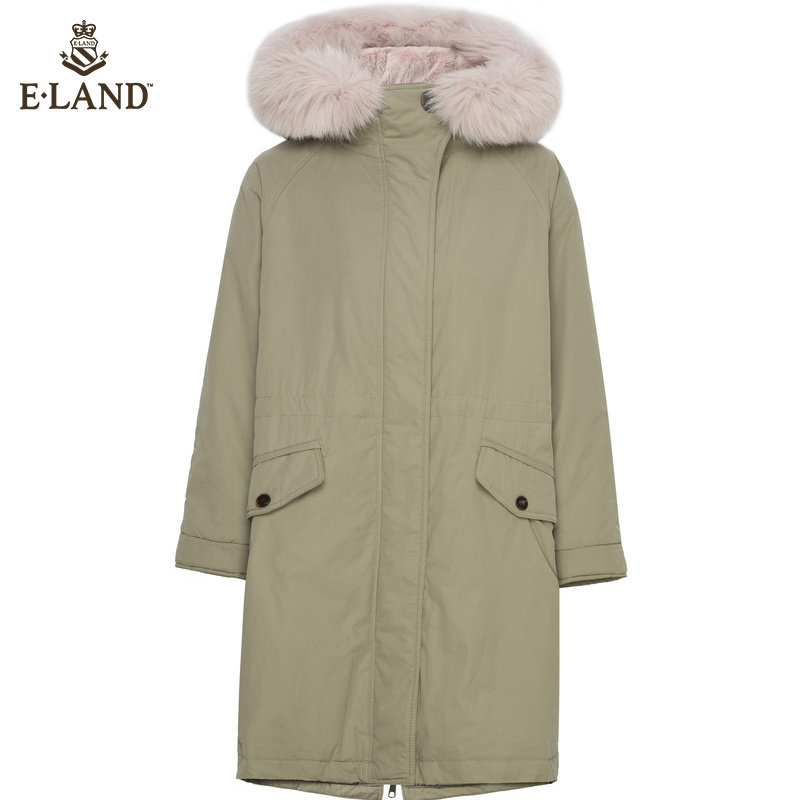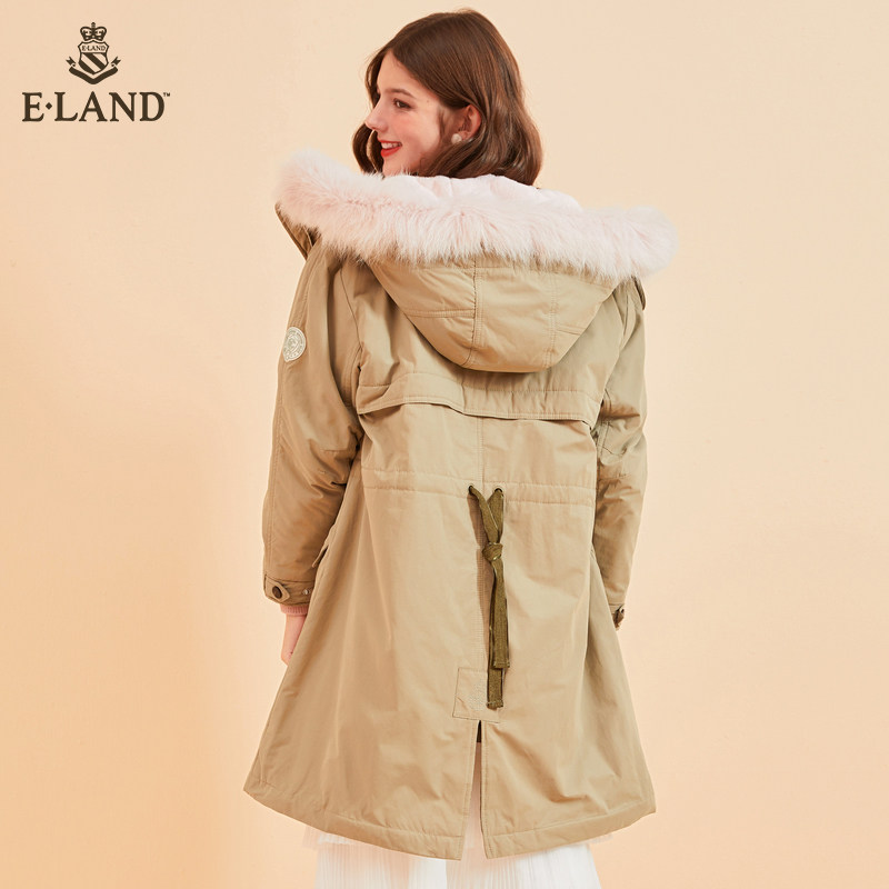 ELAND CLOTHES LOVE LINER Cap Tooling Wind Pumping Rope Collection Waist Hairbrush Strips Plus Suede Thickened Cotton women's medium long version