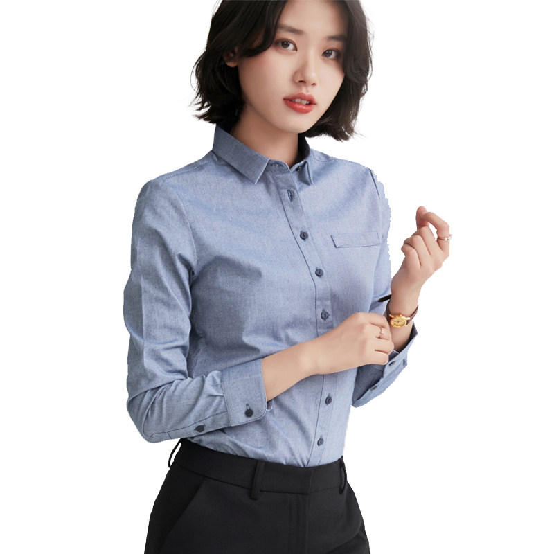 Su color long-sleeved shirt women's high-end top spring and autumn new professional thick work base cotton shirt