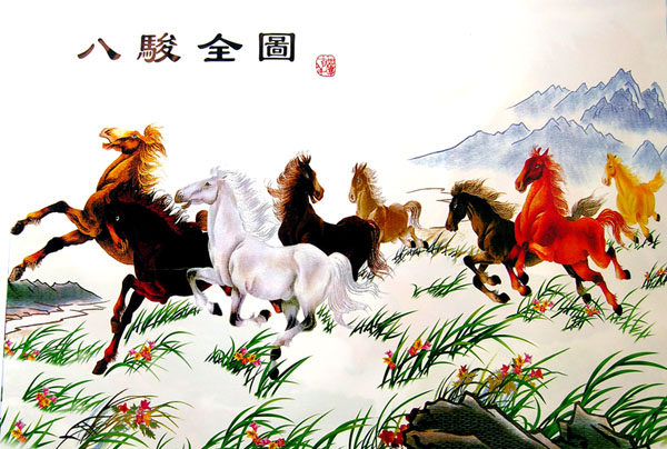 Large landscape landscape poster painting living room wall stickers without adhesive dormitory bedroom stickers Eight horses full picture horse to success