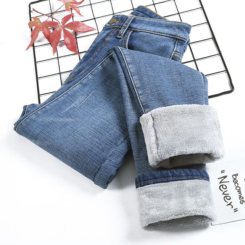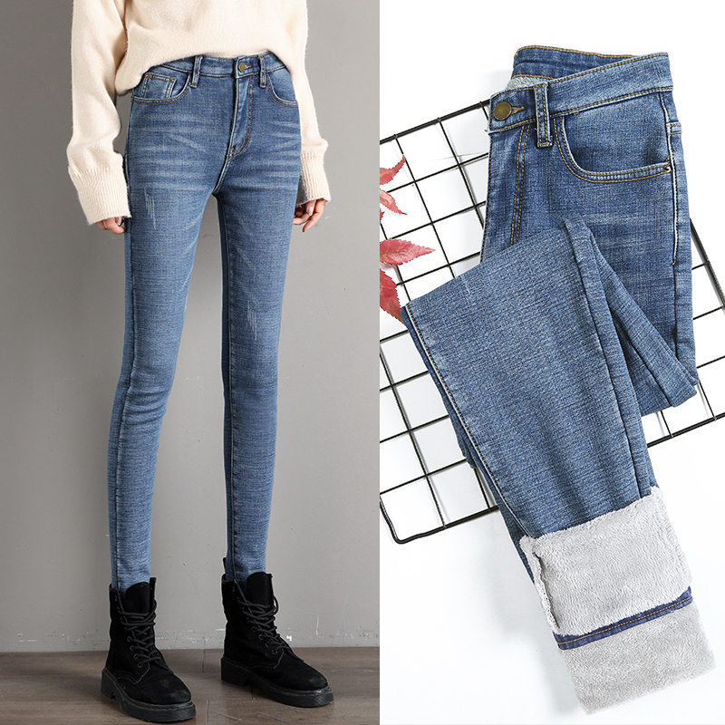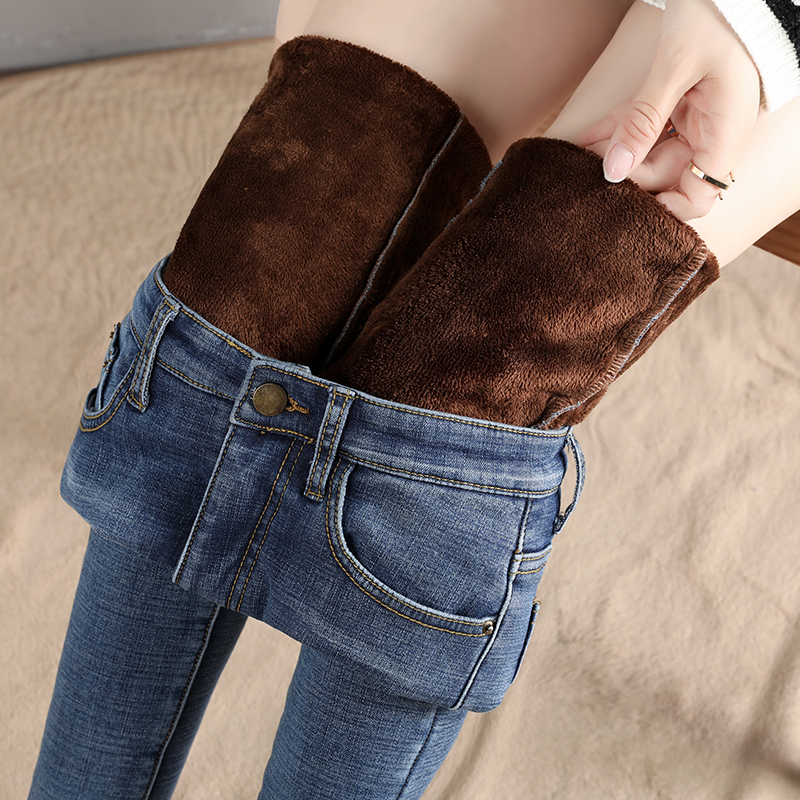 Plus-down jeans women's 2019 new high-waisted Korean version of winter thin plus thick feet to keep warm outside wearing pants women's winter